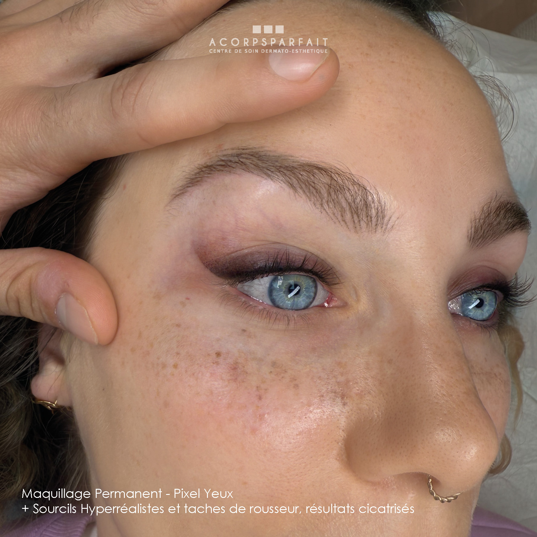 Le soin « maquillage permanent » tel qu’il est proposé par A Corps Parfait consiste à introduire des pigments minéraux au sein du derme à l’aide d’un appareil électrique et d’aiguilles stérile à usage unique. Les pigments sélectionnés permettent de modifier la couleur de la peau sans aucun danger pour la santé, à l’image des tatouages. Corriger les expressions, intensifier le regard, fournir une base de maquillage naturel pour la vie de tous les jours et corriger les traces d’une ancienne dermopigmentation malheureuse font partie des demandes régulières de nos clientes.